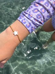 The Salty Star Bracelet brings seaside sparkle with mini gold beads and a dainty shell star. Adjustable for the perfect fit — your golden, beach-day essential.