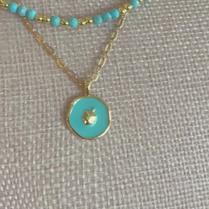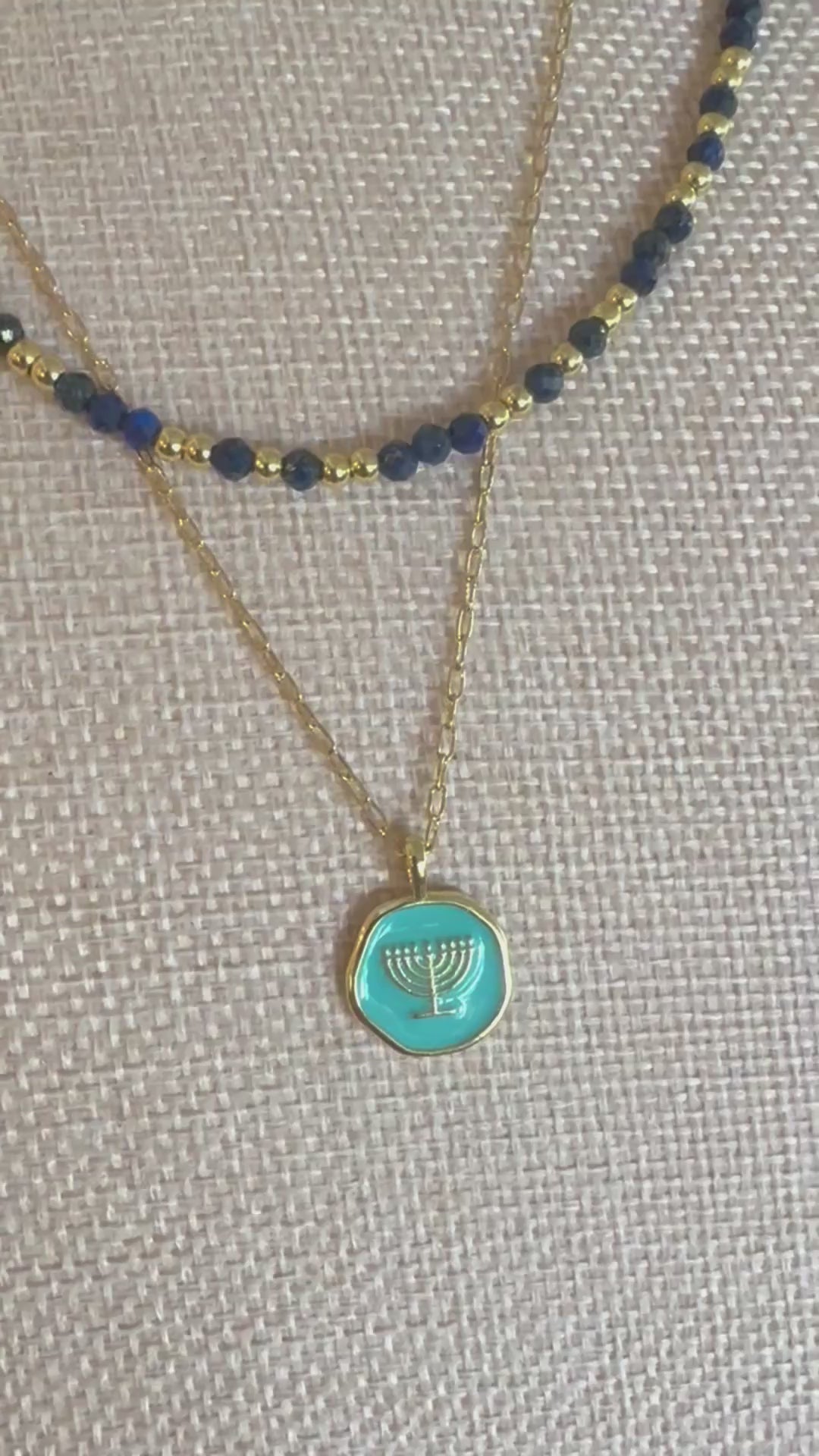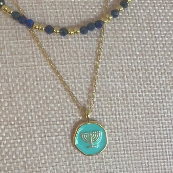 This Happy Hanukkah necklace stack brings all the soft glow of the season in one perfectly layered moment.