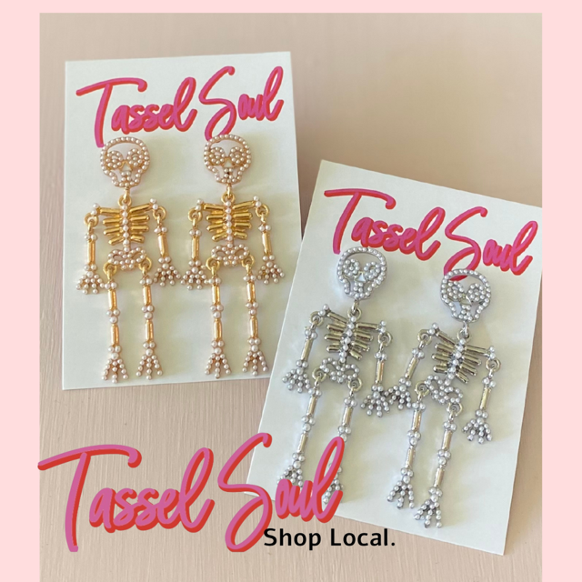 Get into the spooky spirit with our playful Skeleton Dangle Earrings! These earrings are perfect for adding some Halloween vibes to any outfit.